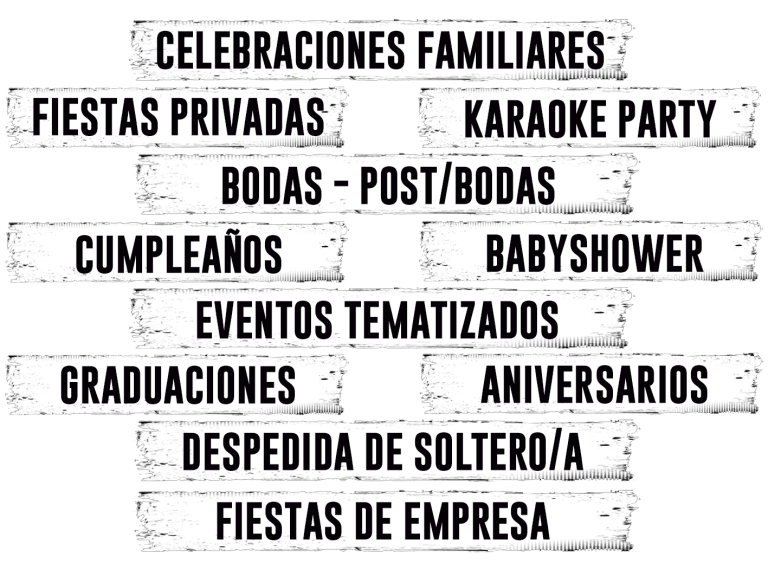 Y además de nuestros eventos habituales, ofrecemos tres propuestas especiales: Especial Bodas/Despedidas, Karaoke Party y Eventos Tematizados.